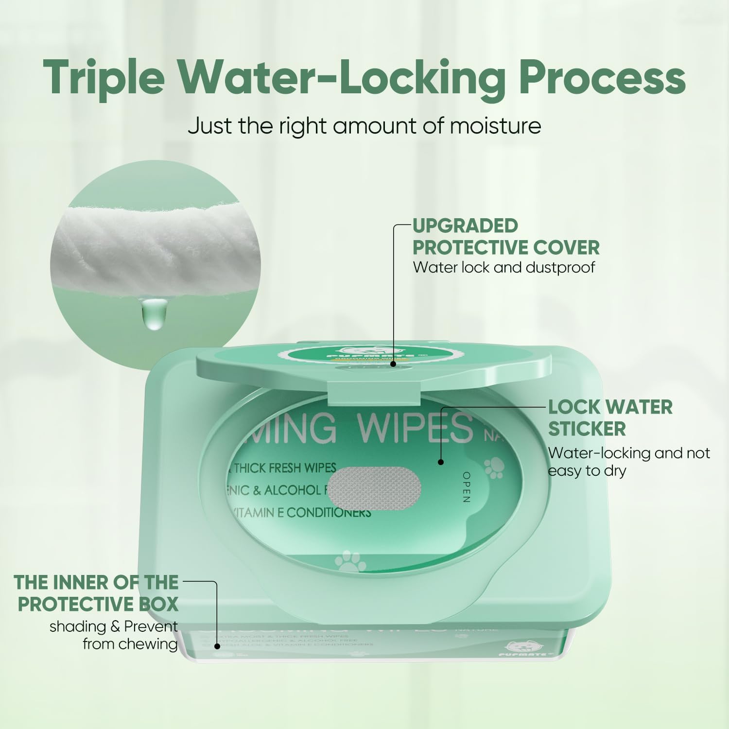 - DELICATE AND EFFICIENT CLEANSING: At PUPMATE, These grooming wipes for dogs & cats, and puppies wipes go beyond cleaning โ they embody our commitment to creating a happier, healthier life for pets. Whether it's ridding them of dirt, mud, or a weird smell, our pet wipes work diligently to cleanse their butt, eyes, ears, and paws, ensuring that their four-legged friend feels consistently clean and delightfully refreshed