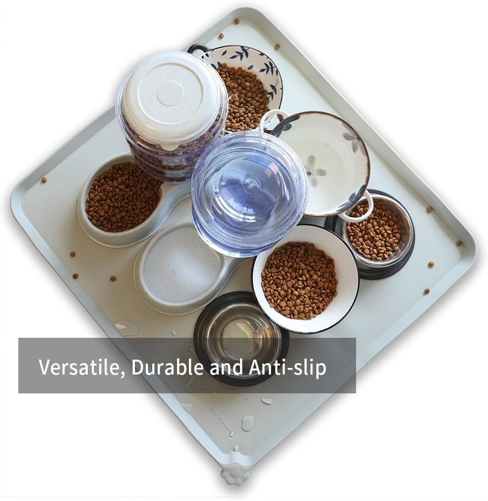- Extra High raised outer lip prevents food, water and treats from spilling onto your clean floors! Please refer to measurements for size.No more messy spills on floor again.