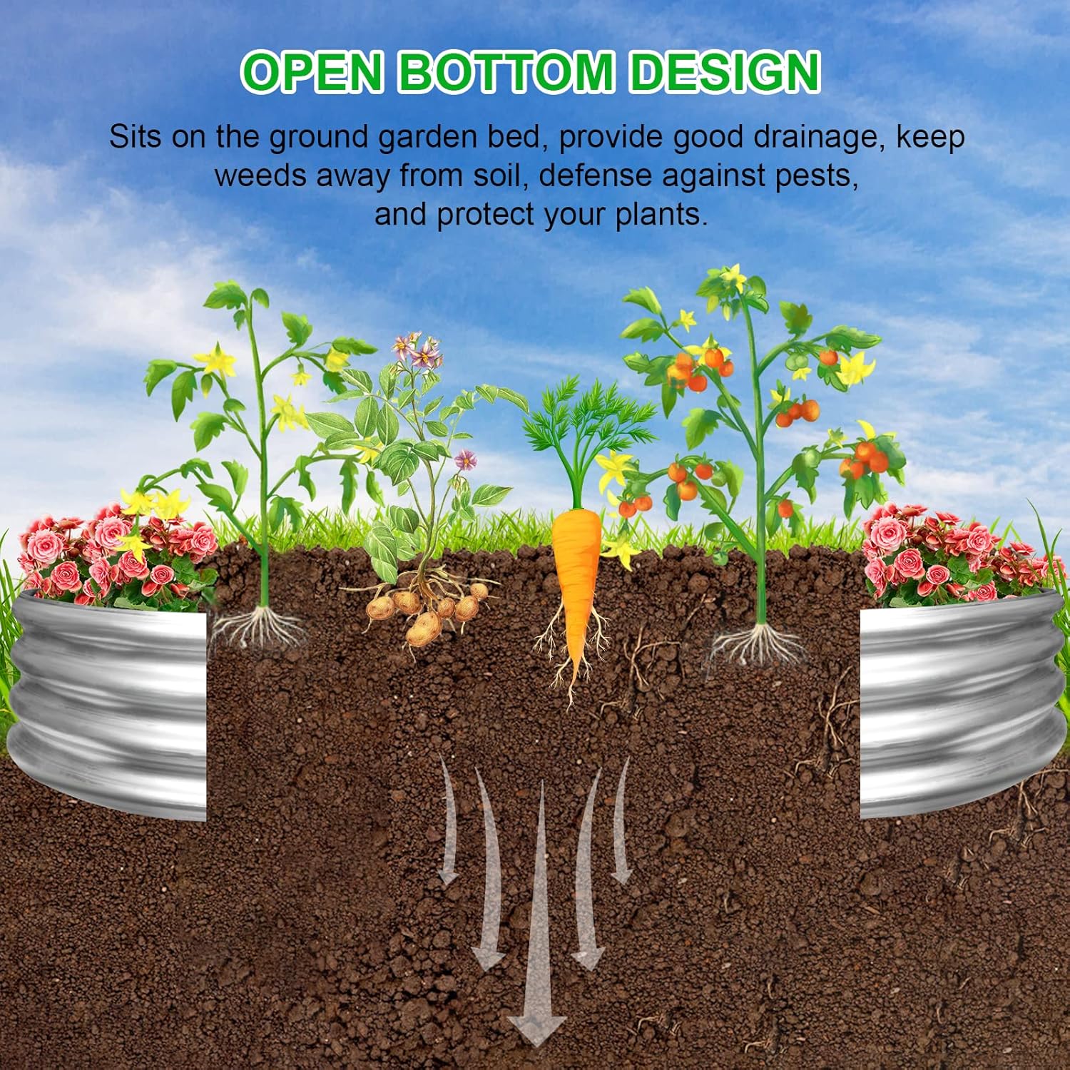 - 【OPEN-BOTTOM】. The metal garden planter box has an open base that is strong enough to allow the plant's roots to grow deeper and healthier, preventing root spirals and improving overall root structure. Great gift for beginner, wife, husband, daughter, dad, mom, grandma, garden lovers.