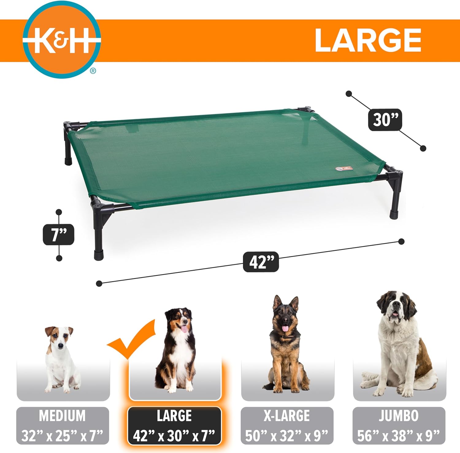 K&H Pet Products Cooling Elevated Dog Bed, Outdoor Raised Cot with Waterproof Breathable Mesh for Large Dogs, Portable Place Bed with Heavy-Duty Metal Frame, Big Hammock Style - Large Green