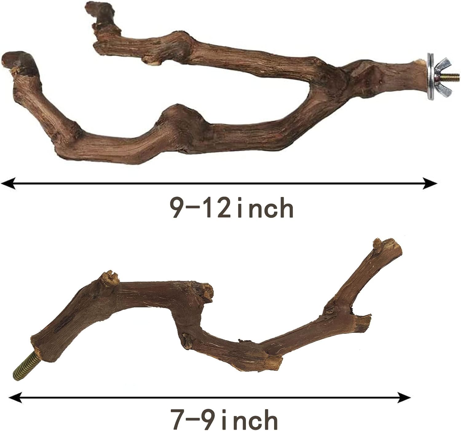 - [SIZE] Our grapevine branches have two different types: bifurcation and no branch. The length of bifurcation branches are about 9-12 in and the length of no branches are about 7-9 in. Our perches are handmade from natural materials.Each branch of a grapevine is not replicable.Different diameters also give your bird's feet a better workout