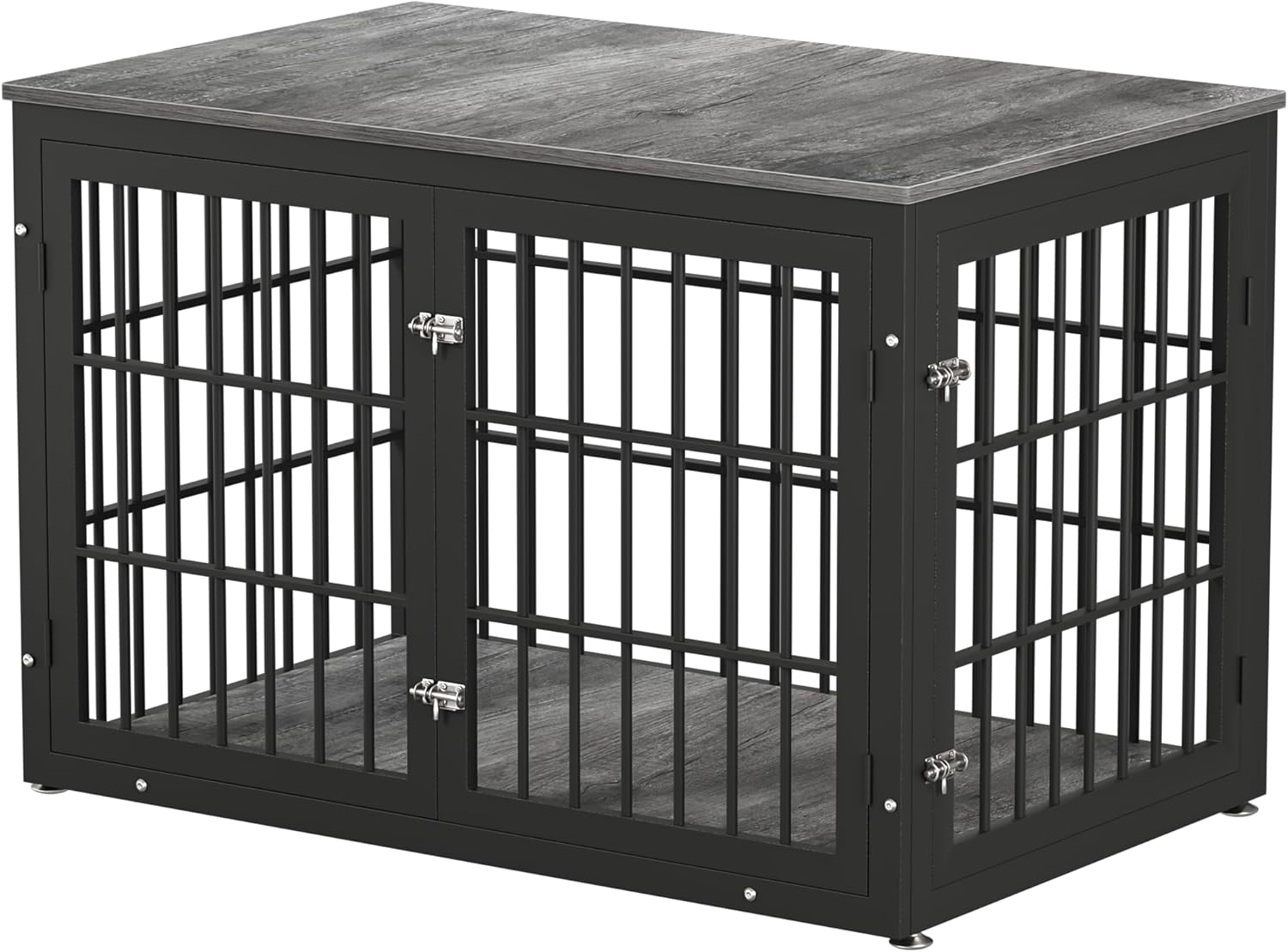 - 【Safety Guaranteed】 The metal coating and board surface are non-toxic if the dog chewed or licked. The sliding latches on the front door and side door prevent the high anxiety dogs from opening the door and escaping.