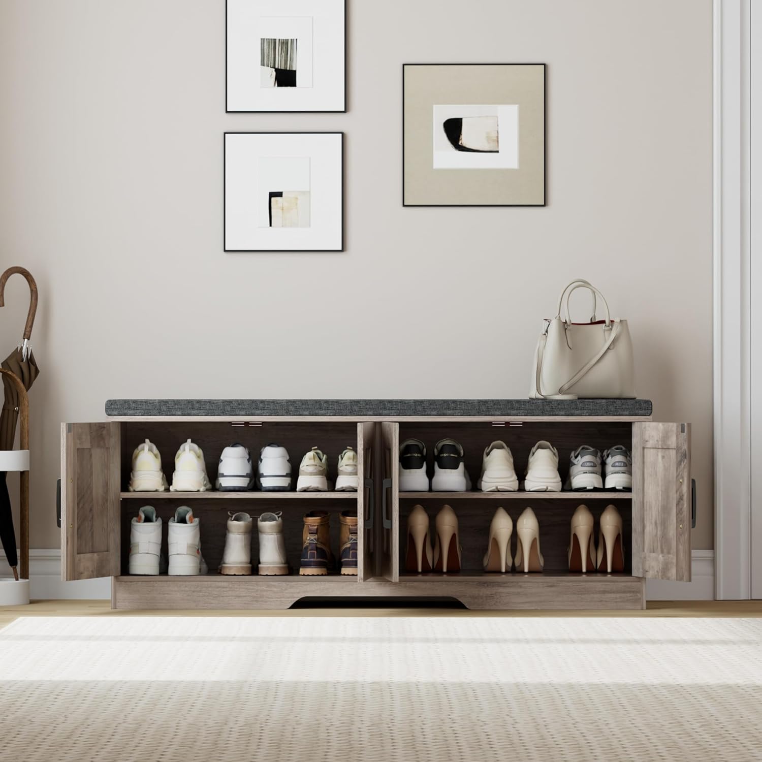 - More Comfortable Shoe Change Cabinet: With a 25 mm sponge cushion on the bench top, you can change shoes by sitting on the bench more comfortable without bending down or squatting