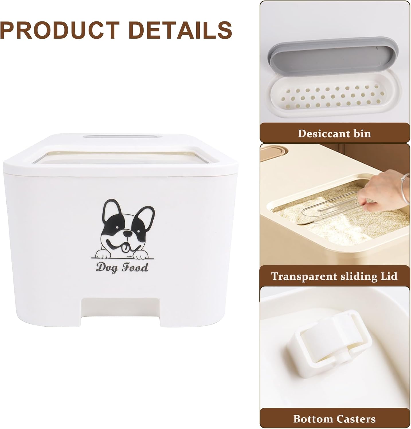 - 【Moveable pet food bin with Wheels】:The 4 detachable rolling wheels make it easier to move around the container even when it's full, and it lifts the cat food bin up to aviod the moisture from floor.