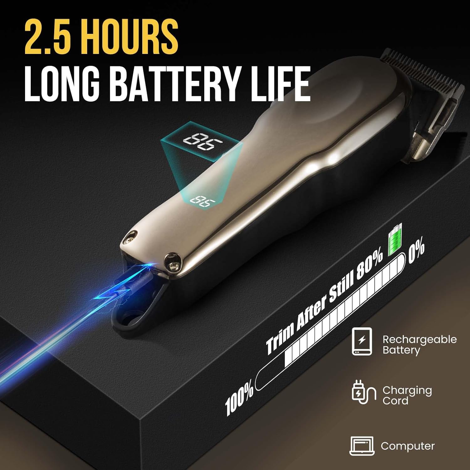 - Large-Capacity Battery and Cordless Design: 1500mAh high capacity battery, 20W Power, charging for 2-3 hours and can sustain the use of nearly 150 minutes. You could design your horse coats as you like. Our Horse Trimmer is designed with powerful for quick trim to remove your pony’s coat, which will not snag or pull the them.Long lasting use not harm the animal. Cordless Horse clippers greatly improve the efficiency of shaving, whether in the stable or on the farm can be free to shave without the constraints of the power cord. It is lighter than traditional corded horse clippers.