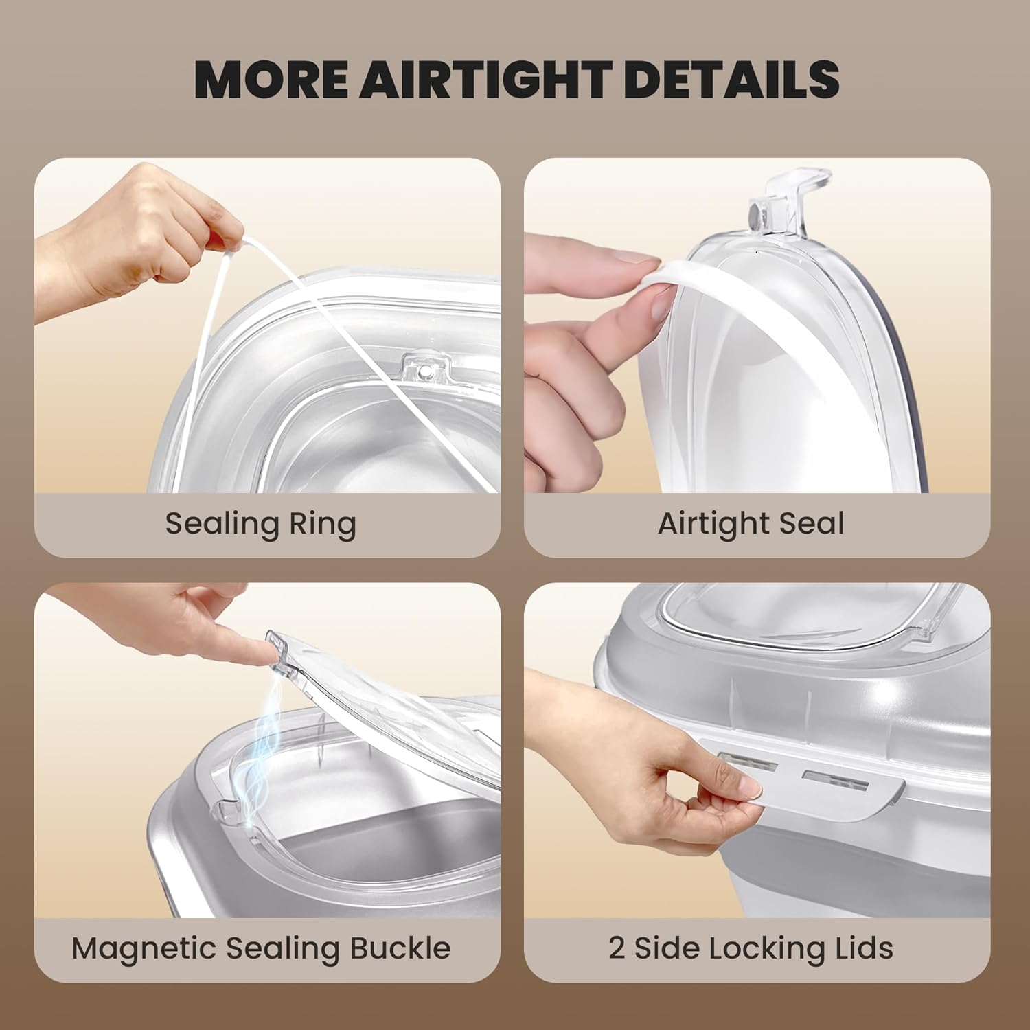 - Superior Sealing for Freshness: Our dog food storage bin is designed with a double airtight seal and 4 secured latches, ensures your pet's food stays fresh longer, free from moisture.