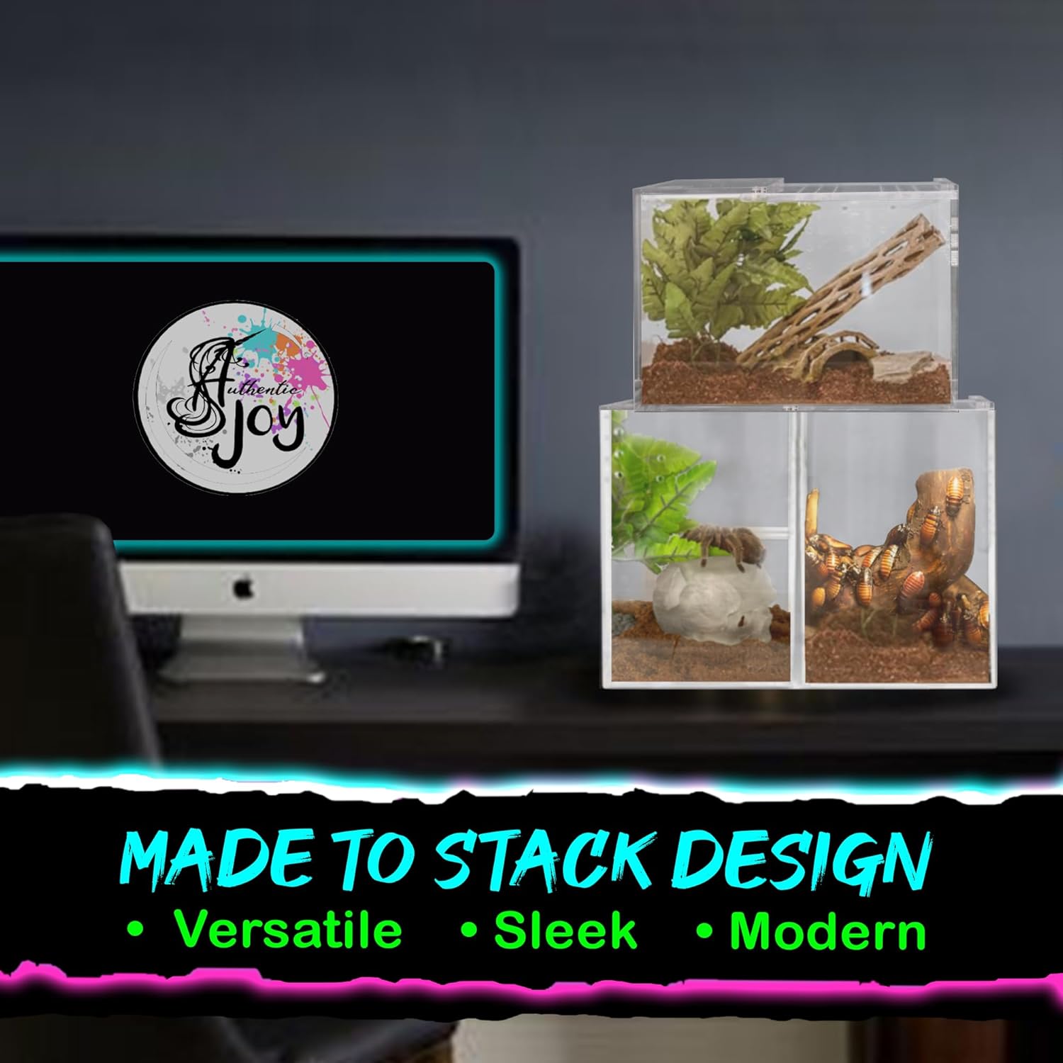 - Houses Terrestrial & Arboreal Animals: Sizing at 5โx5โx7โ our critter keeper can be stacked for vertical or horizontal use which permits housing terrestrial and arboreal animals, making this an ideal adult spider terrarium. You can convert our arboreal tank into a hermit crab cage, a frog tank, snail terrarium, snake tank or a tarantula terrarium - making it a suitable home for your small pet or live insects.