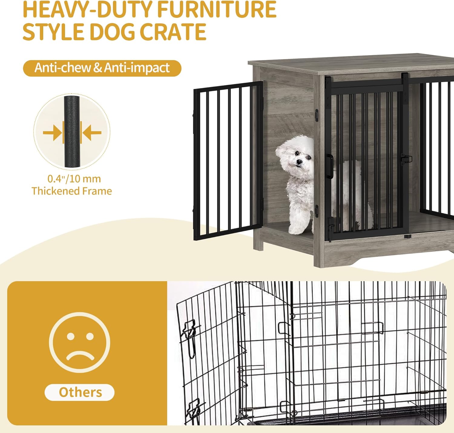 - Anti-Chew & Anti-Escape: Our dog kennel is designed to be anti-chew and anti-escape for your furry friend security. The edges of the boards are not exposed to the dog to avoid chewing on the boards, 0.4" tubes make this small dog crate escape-proof!