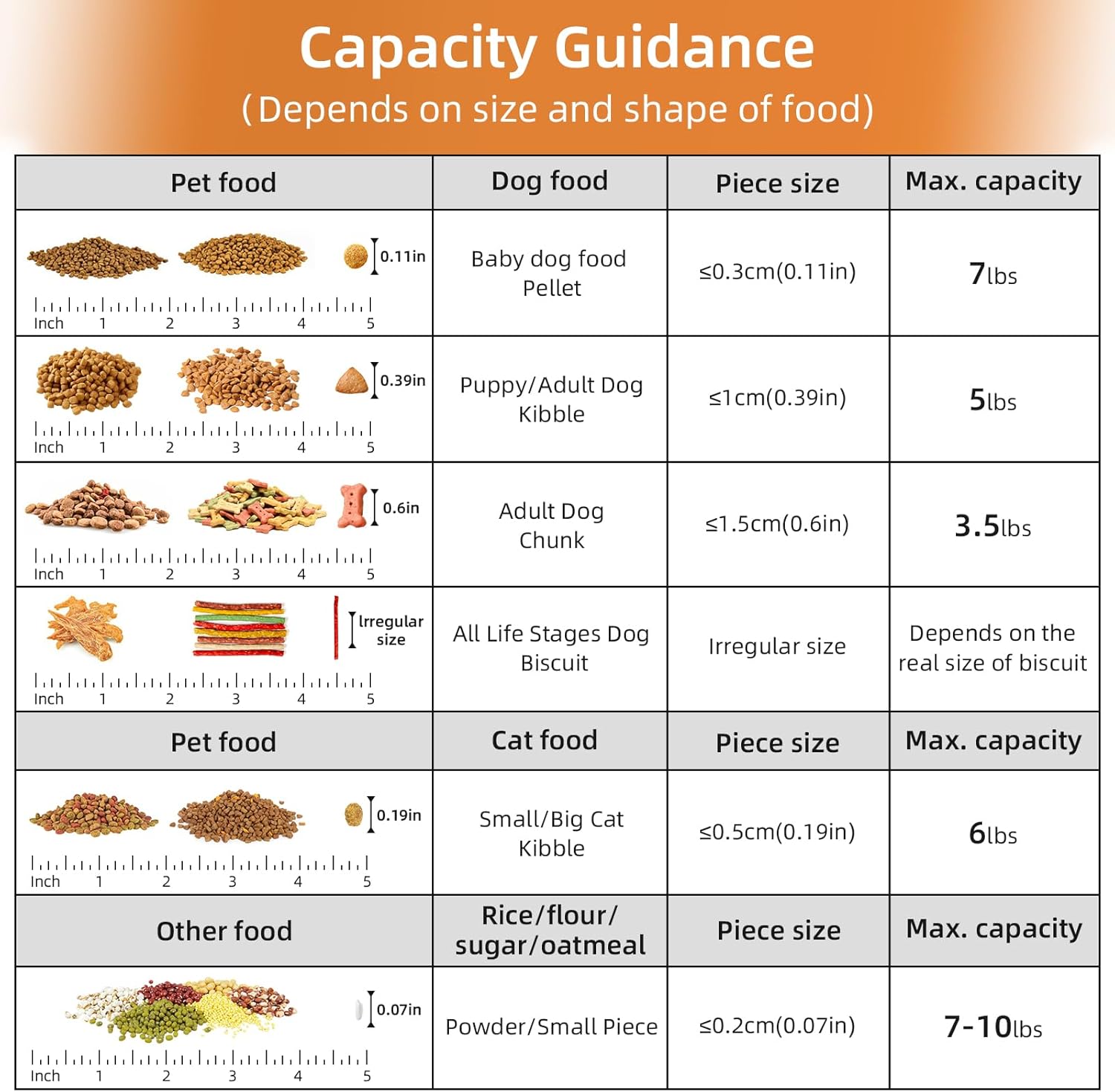 - MULTIPURPOSE STORAGE : Our pet food container is suitable for storing dog food、cat food、bird seed、fish food、rice、 dry food、cereals、oats、cat litter 、flour and other large and small grains, as well as washing powder used at home. It is also a good choice.