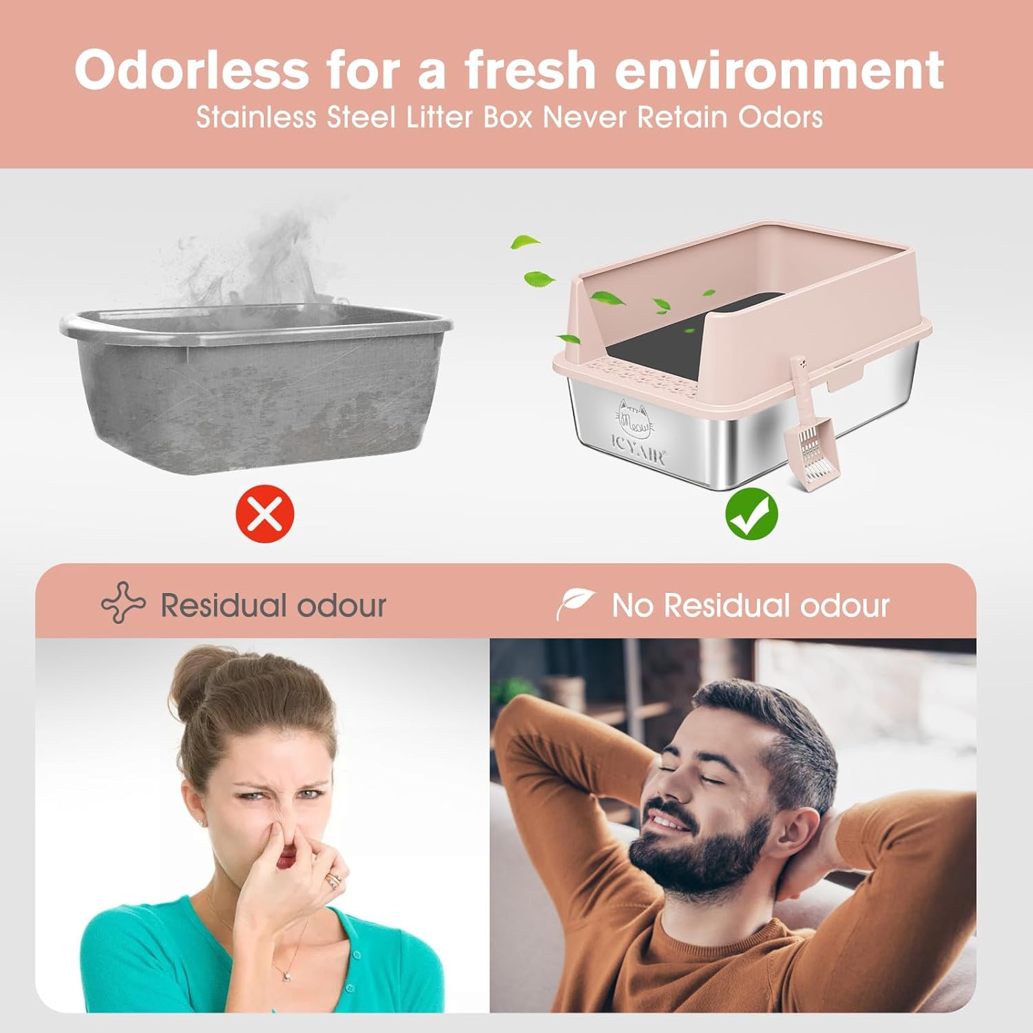 - 【Upgrade your cat's litter experience】: ICYAIR is a specialty manufacturer and seller of quality products for your pet. Our goal is to provide comfort, health and convenience for you and your cat. ICYAIR is always be here for you.Upgrade your cat's litter experience and your own peace of mind with ICYAIR stainless steel litter box now. Your feline friends will surely thank you!