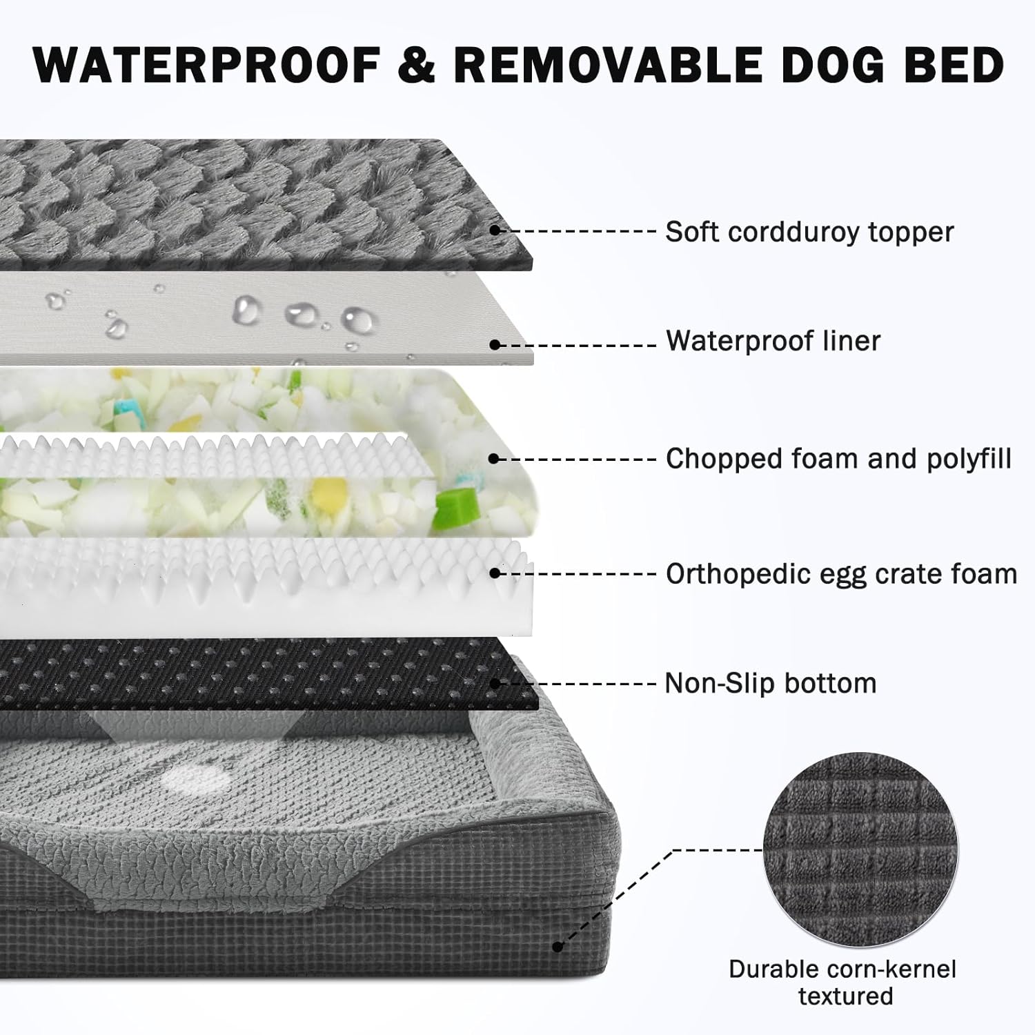 INVENHO Orthopedic Dog Beds Large Sized, XL Washable Egg-Crate Memory Foam Dog Couch Bed with Washable Removable Cover, Waterproof Lining and Nonskid Bottom