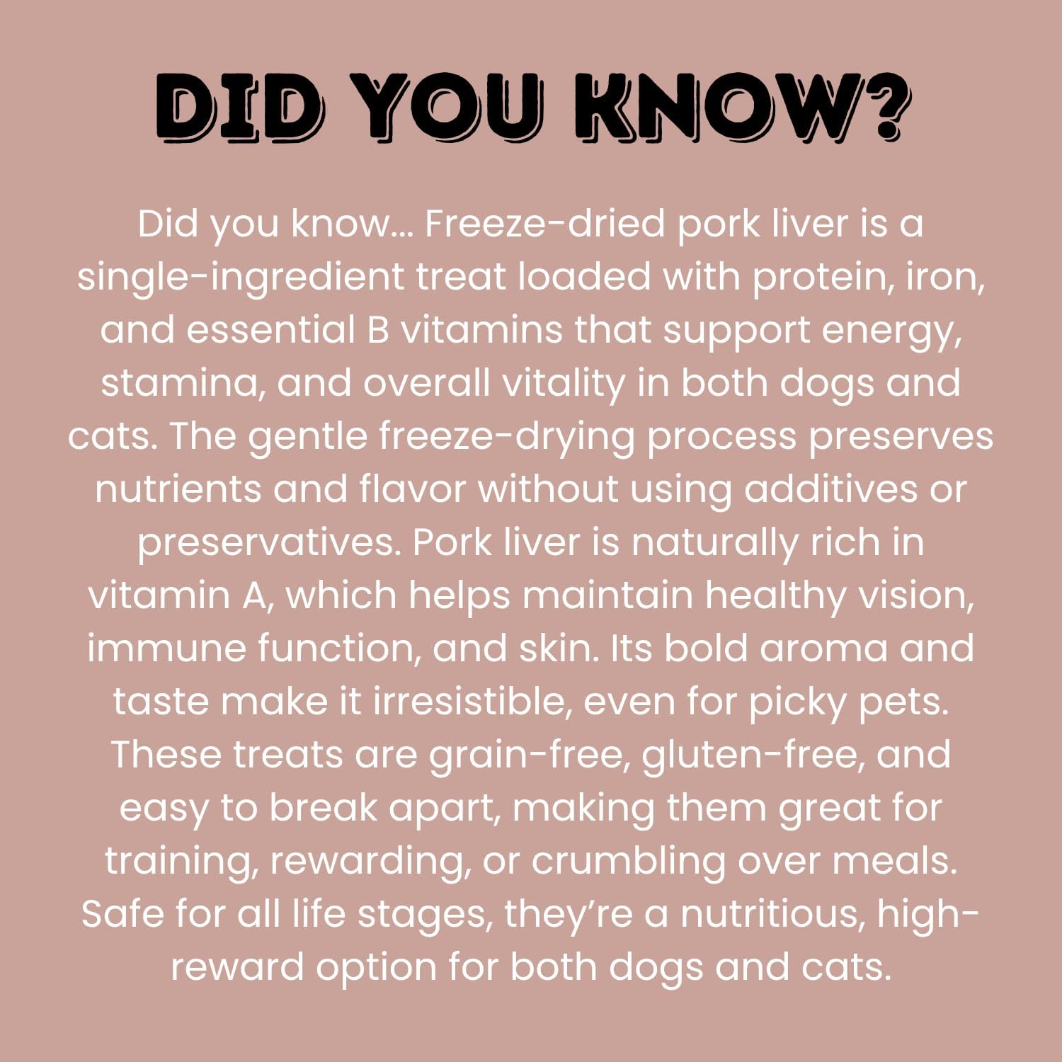 - Just Liver! - A favorite Among Cats & Dogs Everywhere! Use as a Treat or as a Food Topper over Your Pets Dry Kibble!