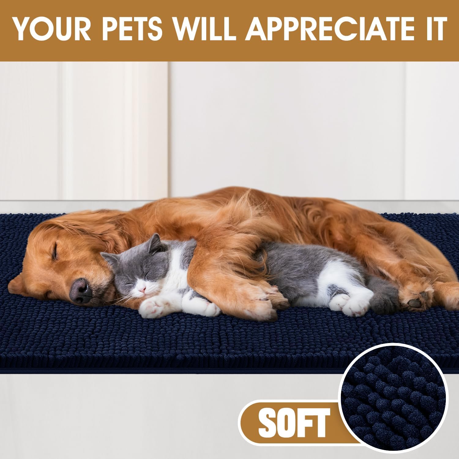 IM HOME Dog Door Mats for Muddy Paws, Chenille Absorbent Door Mats, Non Slip Heavy Mud Mat for Dogs, Soft Indoor Door Mat for Entryway, Mud Paws, Inside Floor,30" X 20", Navy Blue