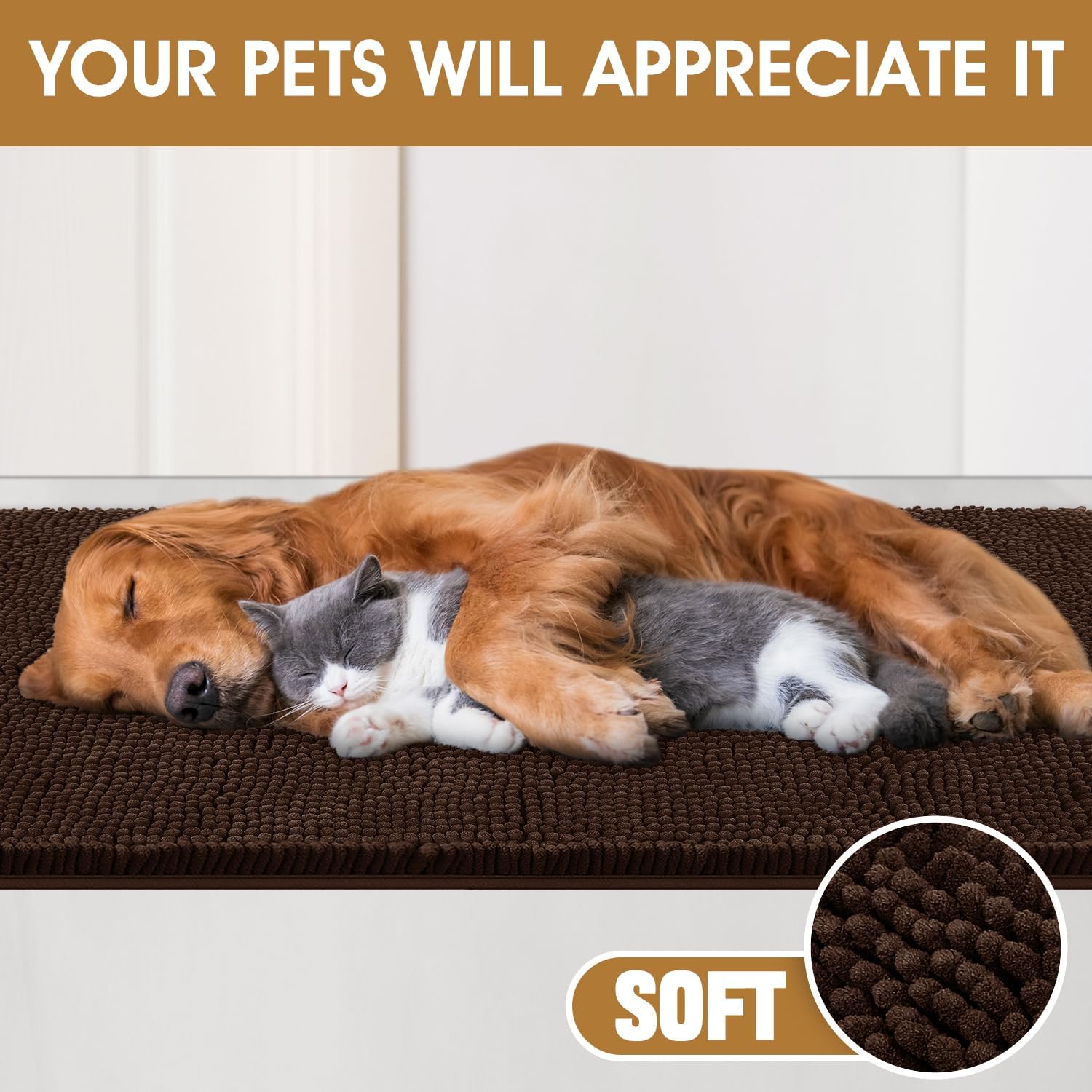 IM HOME Dog Door Mats for Muddy Paws, Chenille Absorbent Door Mats, Non Slip Heavy Mud Mat for Dogs, Soft Indoor Door Mat for Entryway, Mud Paws, Inside Floor,30" X 20", Brown