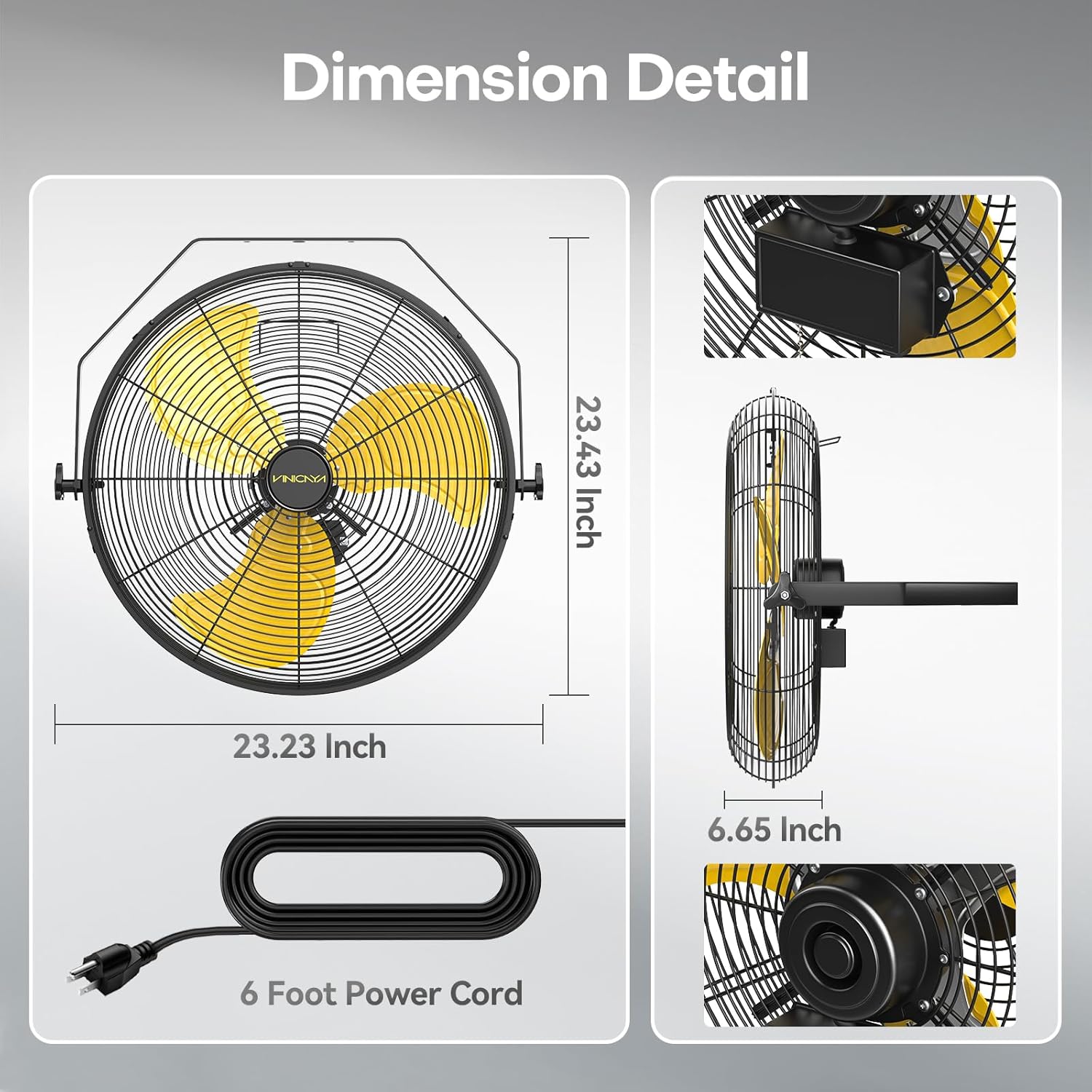 - 3 Speed Settings for Your Needs: Customize your cooling experience with low (4100 CFM), medium (4800 CFM), and high (5200 CFM)-speed options, catering to different needs and preferences—whether for normal circulation or intense airflow of the wall mount fan