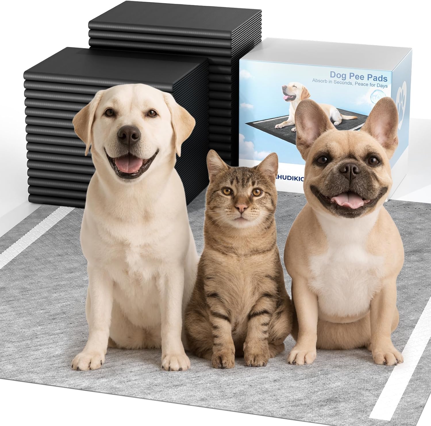 40PCS Charcoal Pee Pads for Dogs 32"x36", Extra Large Odor-Control Carbon Puppy Pads, Ultra-Absorbent & Quick Dry, Thicken Potty Training Pads for Doggie Cats Rabbits, Black Pet Piddle Pad