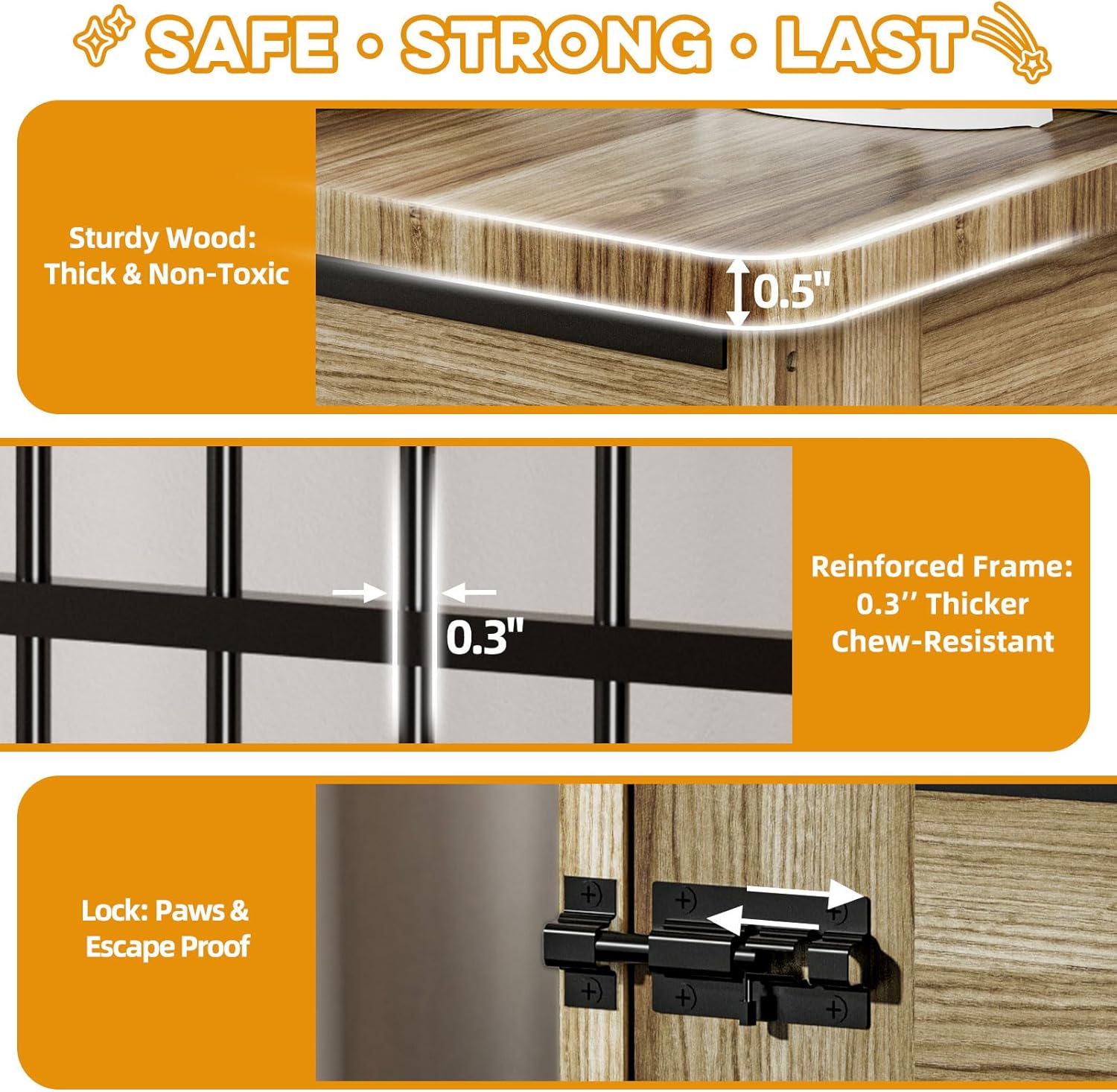 - Space-Saving Double Door: Features an innovative "lift-and-push" front door that opens upward, saving space and preventing accidents. Double door design offers easy access for cleaning, placing beds, or helping your pet in and out